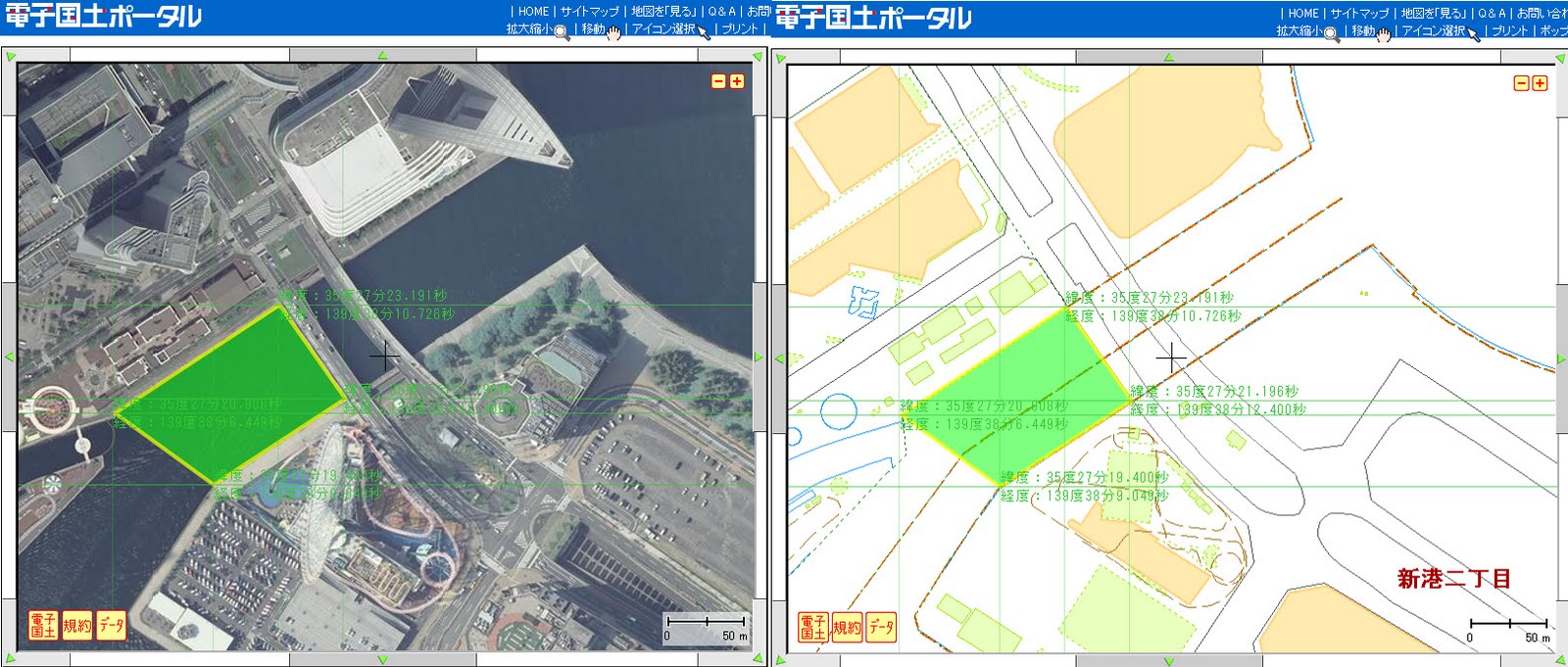 電子国土ポータルサイトの作図、緯度経度線を使って