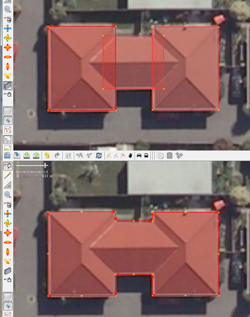 矩形が組み合わさった複雑な建物もBuildings Toolsできれいに書くことができます。