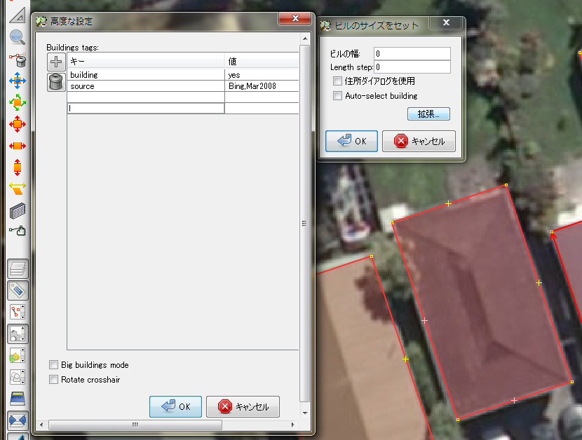 Bing航空写真などの建物をJOSMでトレースする際にプラグインBuildings Toolsを使いますが