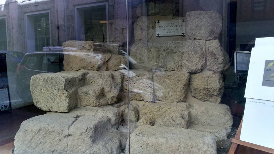 Here’s an example of some former city walls visible in a shop window: https://3.bp.blogspot.com/-OnUPS1SpI3g/WPYNxl4EFXI/AAAAAAAAJjg/nNTpu2-J4u4MYR1dDGPMhHP4zdd_n6IQQCLcB/s1600/17990776_1335536786482546_2806219406469521007_n.jpg (this is from the “first” city wall (severian) of which not so much is still visible today)