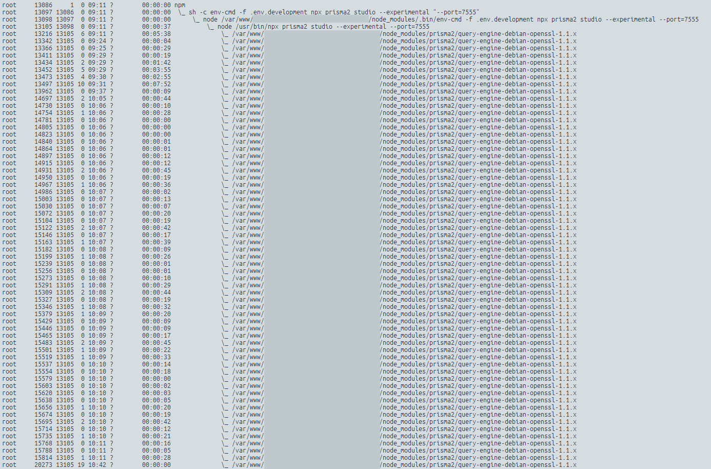 I have a similar problem with prisma2 studio. One instance of the Studio created 61 instances of query-engine-debian-openssl and took all 300 available postgresql connections.